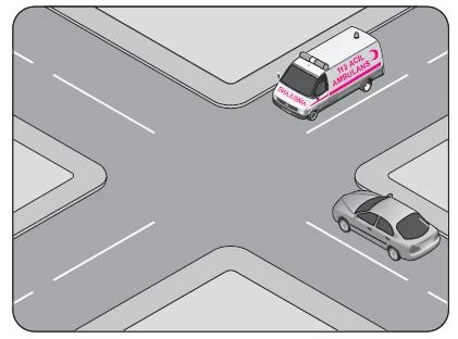 Şekildeki karşılaşmada öncelikle görev hâlindeki ambulansın geçmesi gerekir.