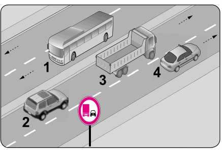 Şekildeki kara yolu bölümünde hangi numaralı taşıtın ok yönündeki hareketi yasaktır?