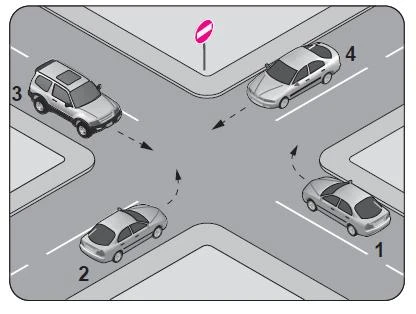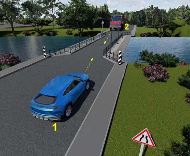 Görseldeki gibi bir karşılaşmada, 2 numaralı araç sürücüsü ne yapmalıdır?