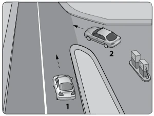 Akaryakıt istasyonundan yola çıkmak isteyen şekildeki 2 numaralı araç sürücüsü ne yapmalıdır?