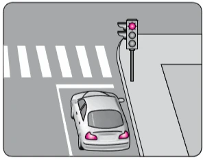 Şekildeki aracın yoluna devam edebilmesi için, ışıklı trafik işaret cihazında yanan ışığın rengi ne olmalıdır?